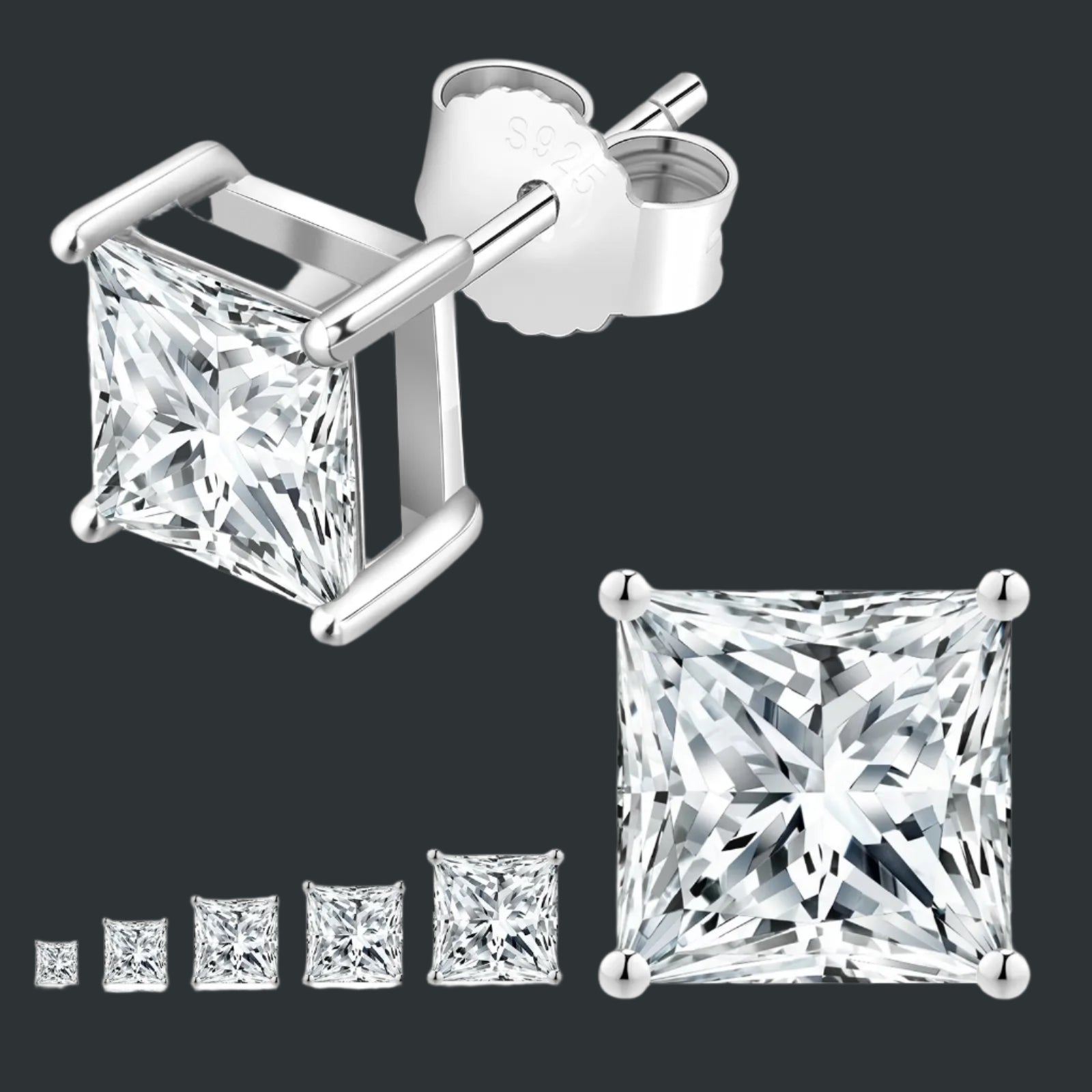 4-Prong 925 Sterling Silver Princess Cut Moissanite Earrings
