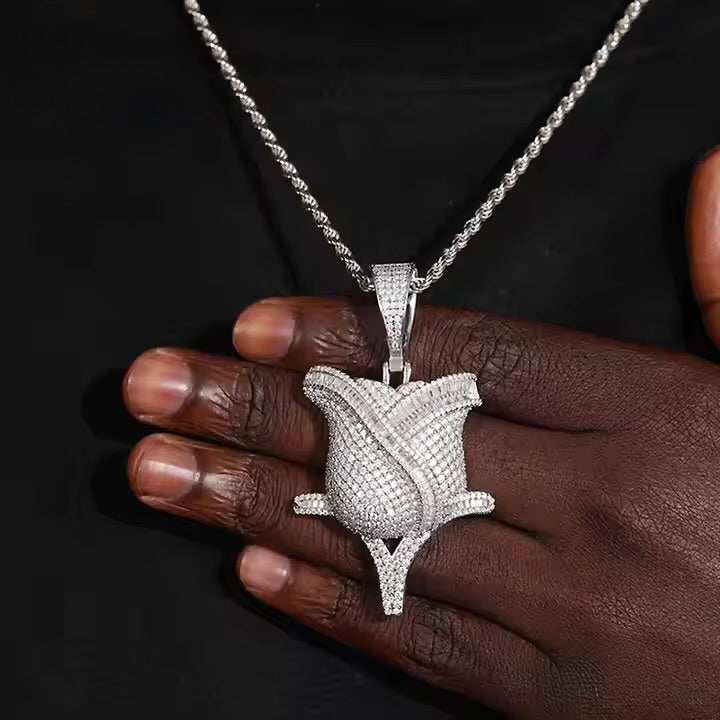 Moissanite 925 Sterling Silver Rose Shape Pendant